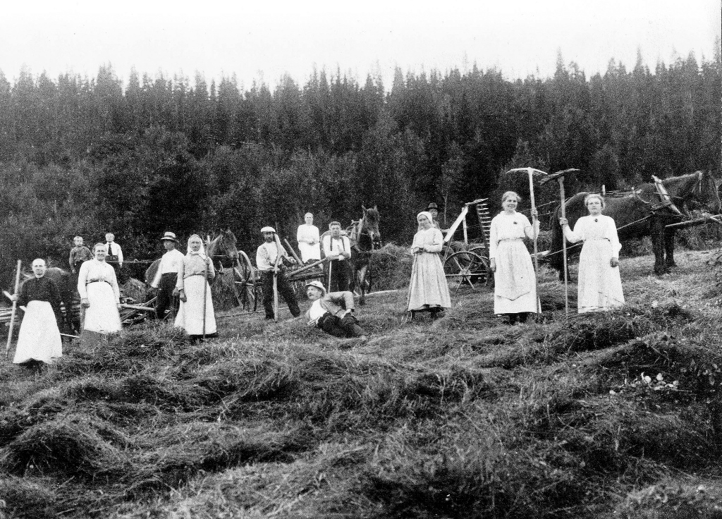 Før industrialiseringa av jordbruket tok til ble den beste jorda brukt til åker. Produksjon av melk og kjøtt foregikk om sommeren og var i hovedsak basert på beiting i havnehager og utmark. Det meste av sommerhalvåret gikk likevel med til å høste vinterfôret som måtte til for å berge buskapen over til neste beitesesong. Store arealer eng og myr ble slått med ljå, og graset ble tørka på bakken eller i hesjer. Høyet ble lagra på låven, eller i løer og stakker for å bli kjørt heim med slede på vinterføre. Dette var så arbeidskrevende at mer enn ei innhøsting var utenkelig. Det var viktig at denne ene slåtten ga ei stor avling, slik at størst mulig buskapen kunne fores over vinteren og gi grunnlag for produksjon basert på beite neste sommer. Derfor starta slåtten først ved den tida graset blomstra. Det ga størst avlingsmengde. Etterveksten på innmarka, som ble kalt hå, ble nytta til beite for buskapen når den kom heim fra utmarksbeite om høsten.