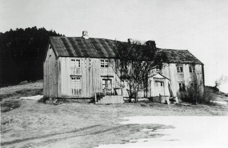 Olaf og Anne på Bjørg på 1940-tallet. Til høgre gammelstua på Bjørg tidlig på 1960 tallet. Den var bygd tidlig på 1800-tallet og hadde husa to lensmenn før Olaf og familien flytta inn i 1909.
