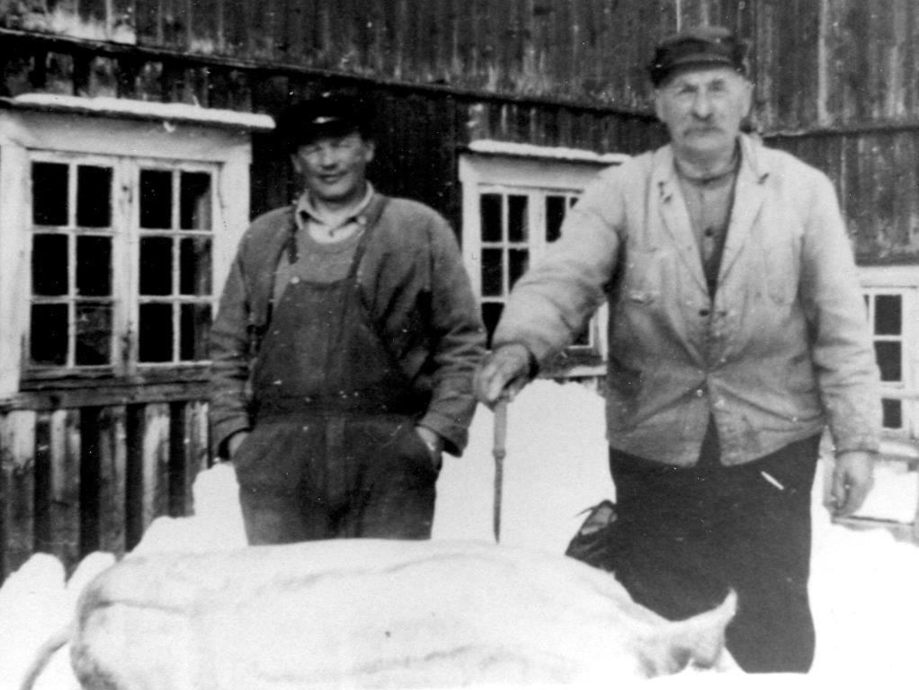 Olaf slakter julegrisen hos Leif Einli på Bøgset.