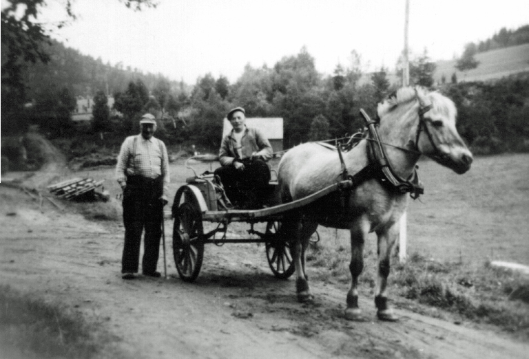 Olaf og Blakka sammen med naboen Anton Jørgensen på Nerbjørg.