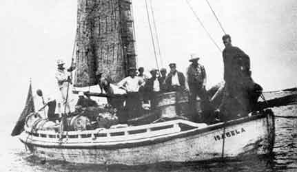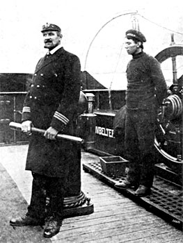 Kaptein Bruun på brua i sine velmaktsdager. Losskøyta Isabela gikk i fraktfart mellom øyene i Galapagos og fastlandet etter den dramatiske turen fra Sandefjord til Floreana.