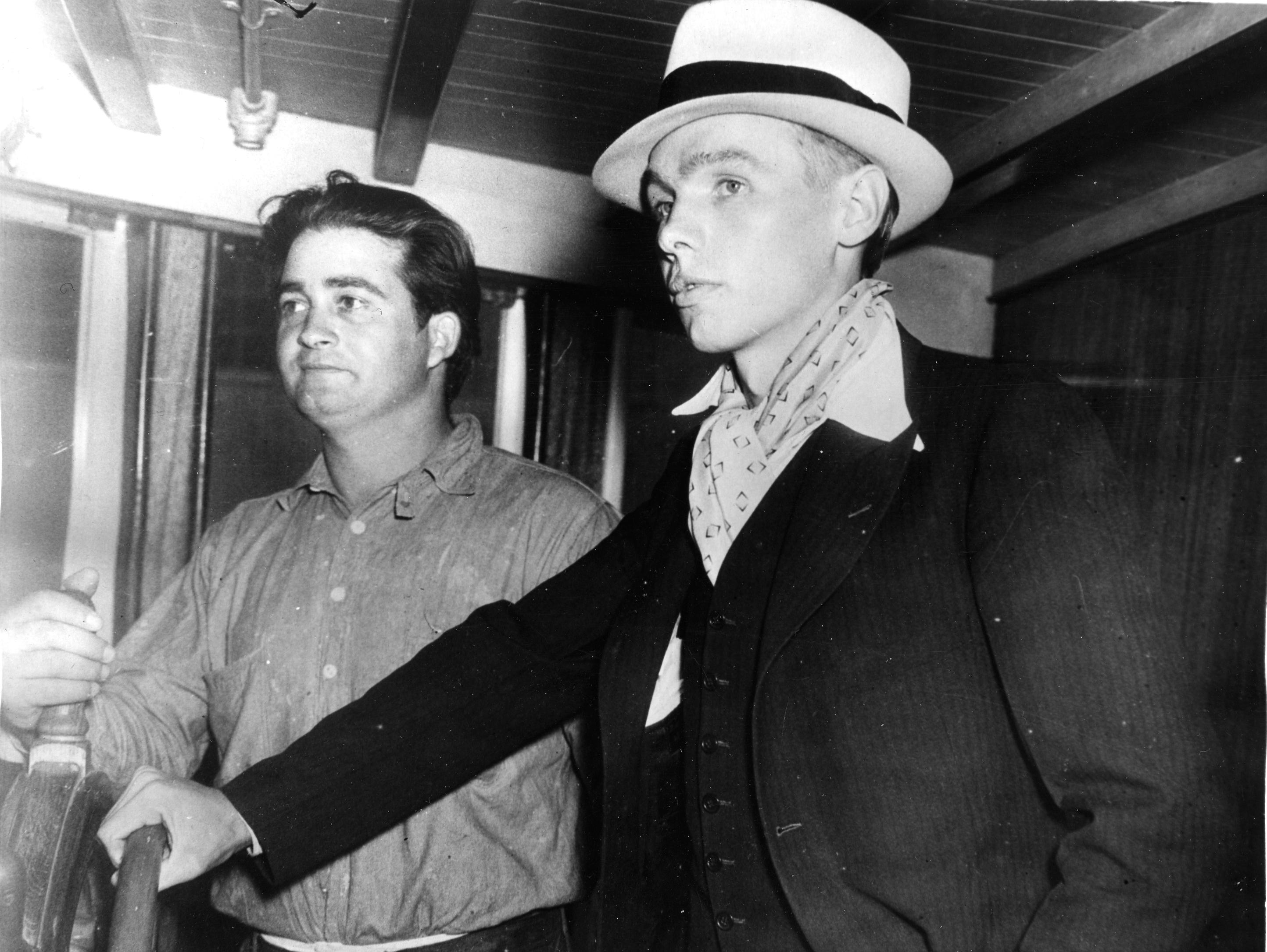 Pressefoto (forside og bakside). Kaptein Borthen om bord i Santo Amaro med noen av brevene som ble funnet sammen med de omkomne ved ankomsten til San Diego 12. desember 1934. Han ble født i Trondheim 11. november 1908 og reiste som 14-åring på egen hånd til New York.