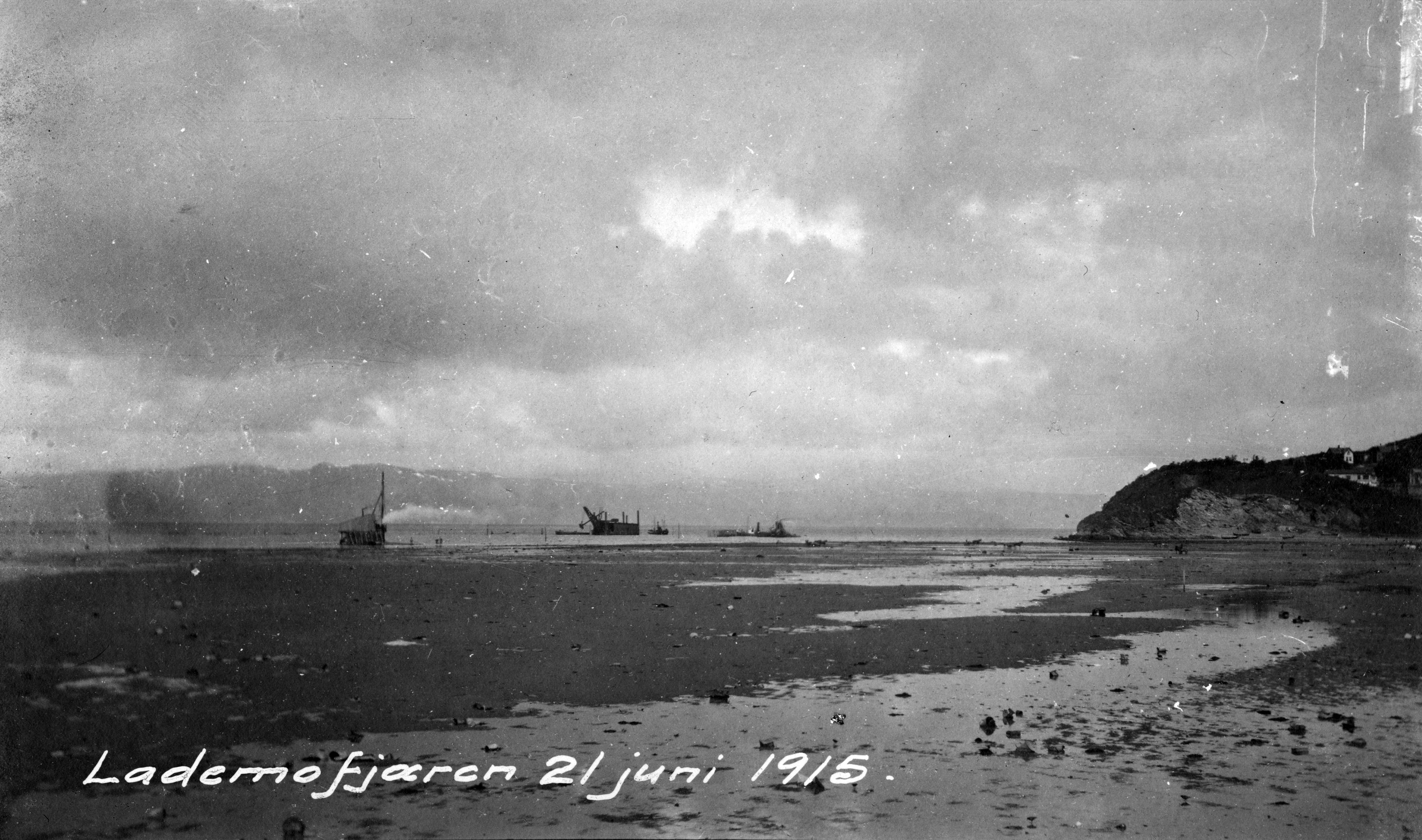 Lamofjæra med Ladehammeren til høgre i 1915. Her ligger i dag Nyhavna og Dora. Foto: Trondheim Byarkiv