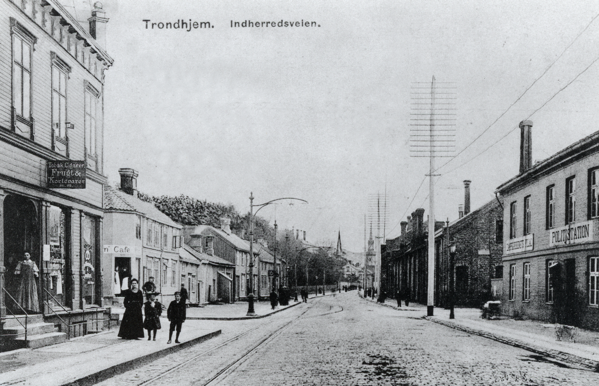 Innherredsveien med Gråmørna politistasjon til høgre, ca 1910. Foto: Trondheim byarkiv.