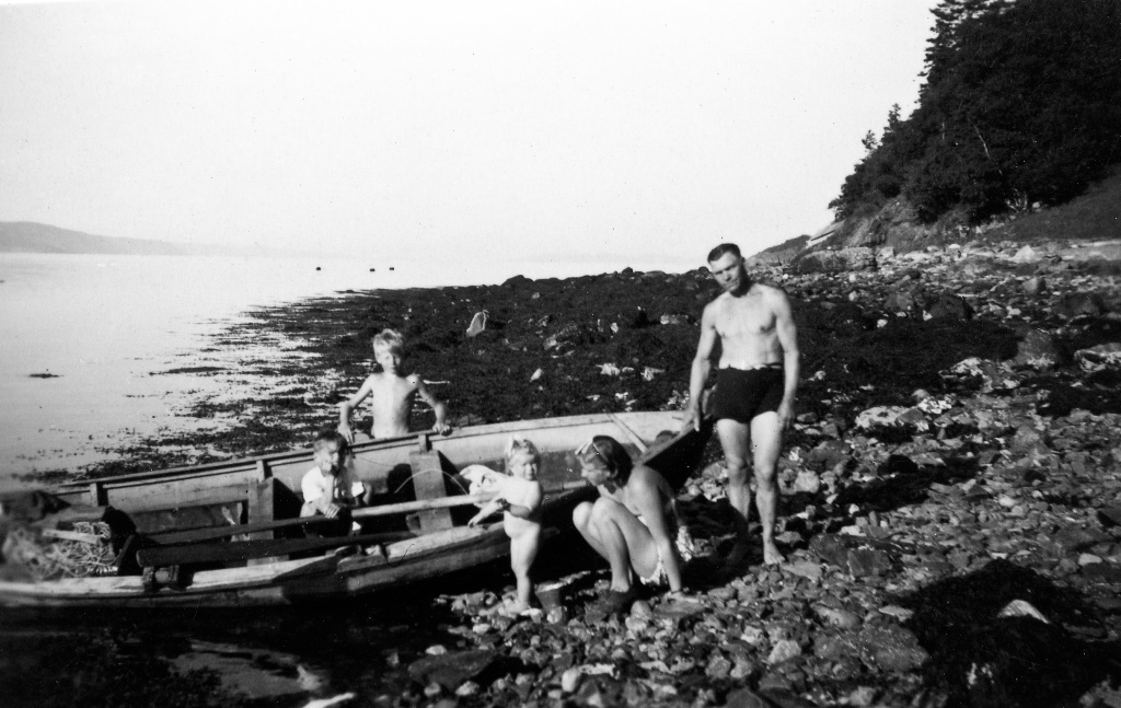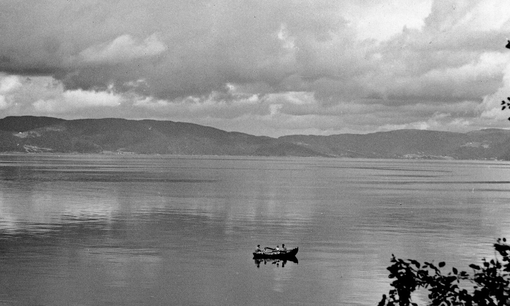 Sjøfiske fra sjekta en godværsdag på 1940-tallet. Utsikt fra hytta på Flakk. Privat foto.