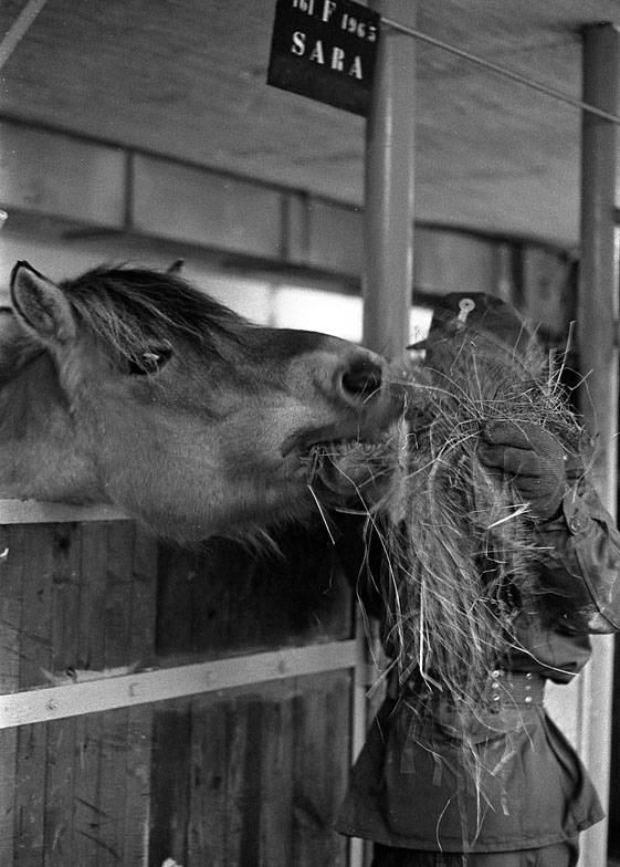 Sara i stallen på Maukstadmoen i 1972, Av skiltet ser vi at fødselsåret er 1963. Foto: Erik Stenvik.